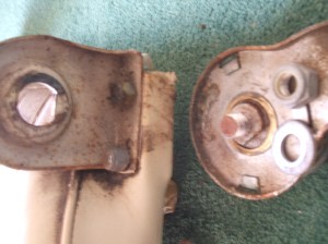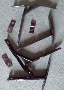 より多くの座席の写真。これらのブラケットは修理され、オリジナルに非常に近い色で粉体塗装されています。 ある時点で、追加の穴が開けられました。 それはブラケットを弱くし、必要としません。 2枚の写真は、シートを分解したときにシートに取り付けられていたブラケットの写真です。