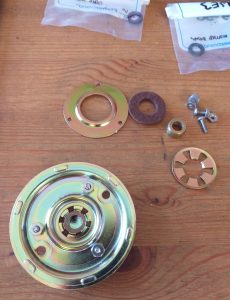 The heater motor has taken far too long to restore. Mainly because parts were lost at the plating business. I had to buy another secondhand motor to help complete the assembly. I made new brass bearings and felt washers. Here are some photos of the parts inside the motor and assembly.