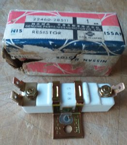 I brought a NOS resistor in its original Nissan box. As you can see, it is not looking very new.