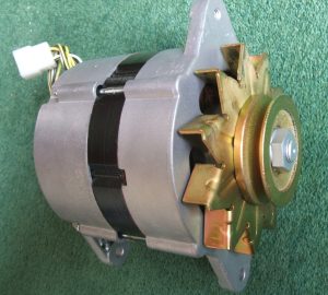 I brought this Mitsubishi alternator from Yahoo Japan. It may not be quite the correct model, but it is close. And it was only £6 (1000¥)! It has been completely rebuilt. The casings vapour blasted, parts yellow zinc plated and the internals rebuilt/replaced. New old stock wires (as per CSP wiring diagram) and new block connector.