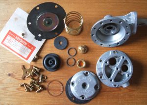 Next up for restoration is the fuel pump. Again vapour blasted then taken apart. Vapour blasted again to clean the inside. New valves, gaskets and plated screws.
