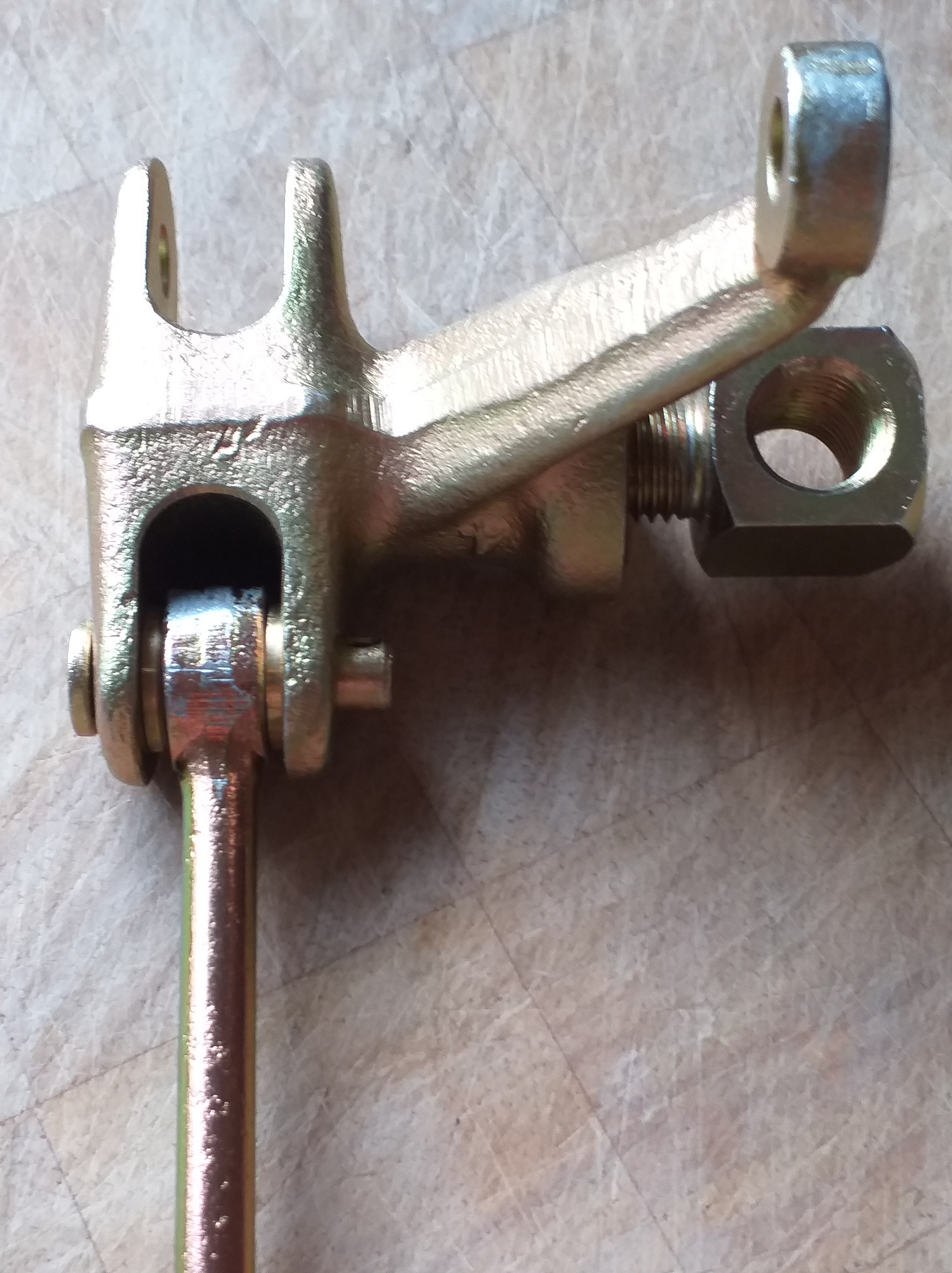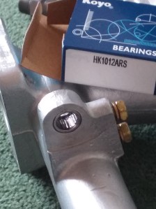 ロッドの端の穴が大きくなったので、ロッドの穴に合うように真鍮のブッシングを作り、ピボット ピンが通れるようにしました。下の画像では、真鍮のブッシングが見えます。本来は、グリースを染み込ませたフェルト ワッシャーでした。組み立てるときに、グリースをたっぷり塗ります。申し訳ありませんが、真鍮のブッシングの写真はありません。