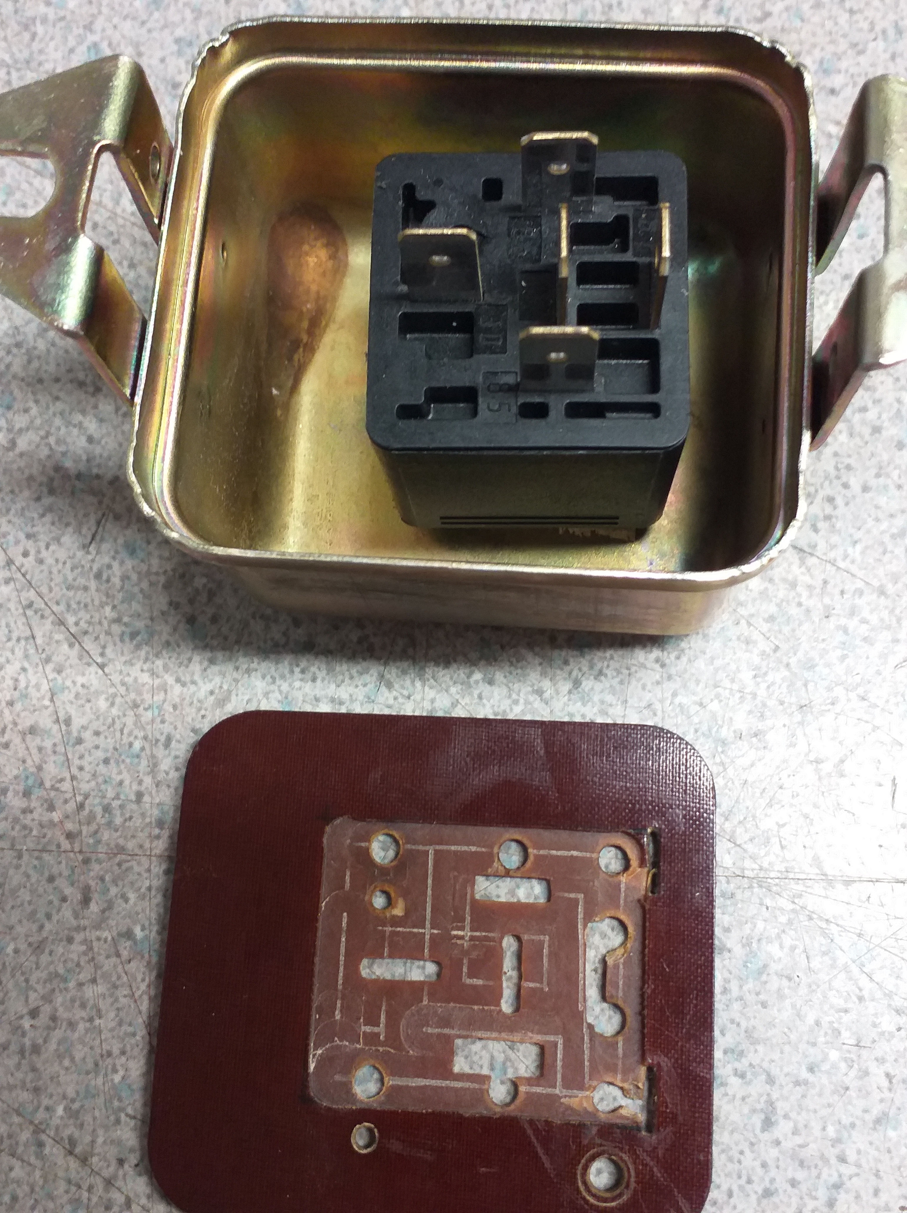 もう 1 つのヘッドランプ ヒューズは、古い金属製ヒューズ ホルダーに取り付けられています。ヘッドランプに配線して、ダッシュ スイッチを経由せずに直接電力が供給されるようにするには、各ヘッドランプ (ディップとメイン) に独自の回路が必要です。また、スポット/ドライビング ランプのペアも計画しているので、ヘッドランプとは別にしたいので、これも独自の配線ヒューズが必要です。オリジナルのバッキングプレートは、うまくフィットさせるために少し加工する必要がありました。