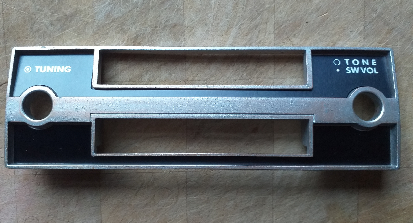 As part of my collection of parts that require a re-chrome, is the correct radio for the CSP311. But to do so, the thin aluminium fascia plates need to be removed. Not easy, and as you see even with as much care as I could, they are a bit too damaged to put back on when the chrome is done (below).