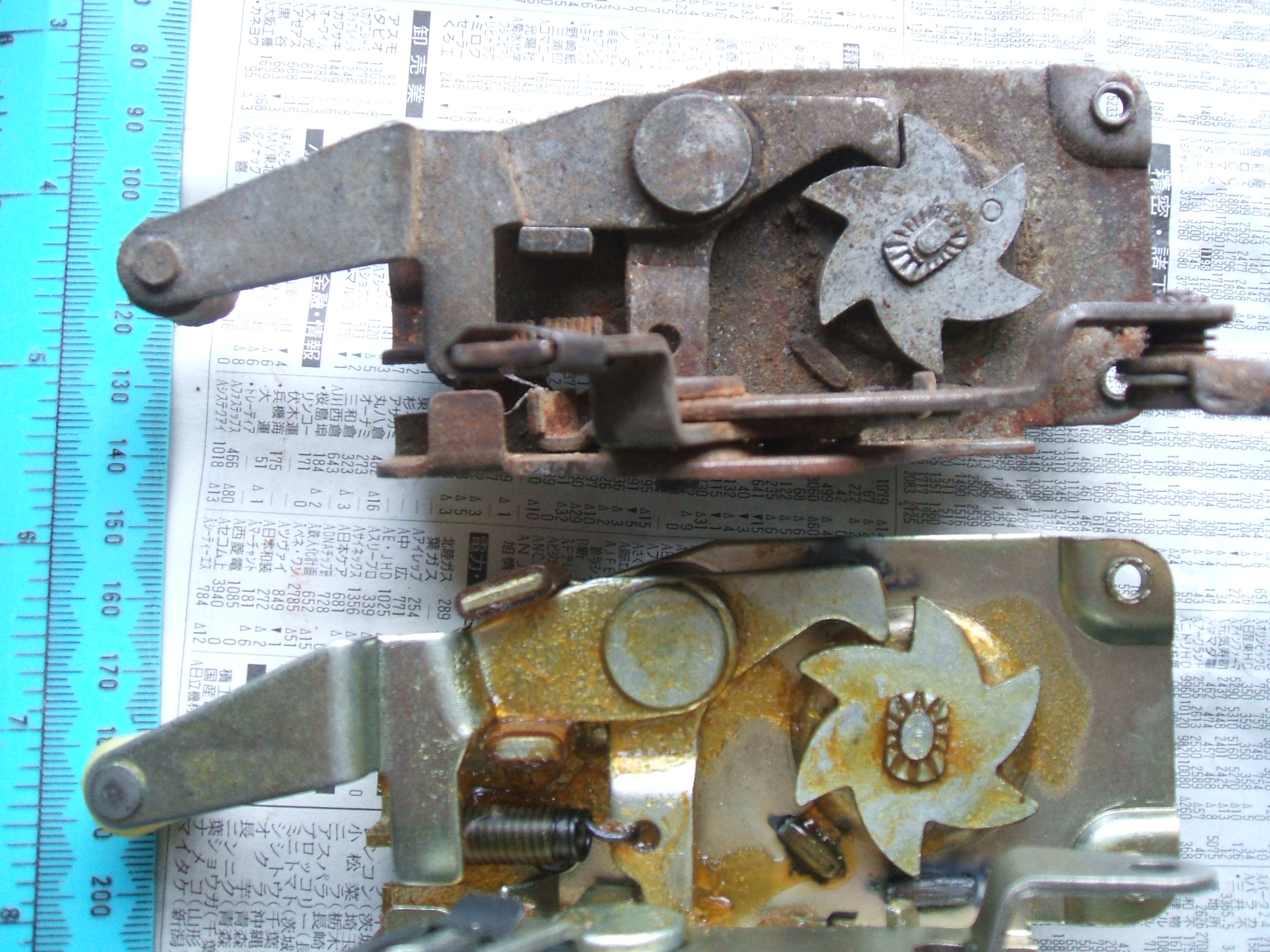 ドアラッチ機構の一部は、古い部分に(上部左端)打ち切られます。良い仕事、私はそれらを交換しています!