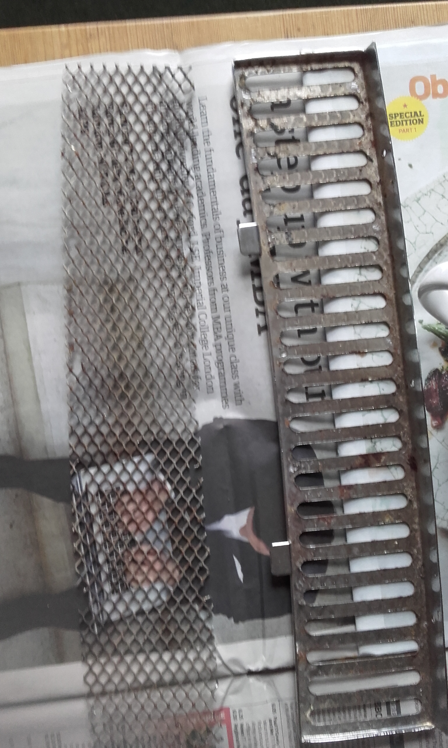 私が使用してクロムめっき装置は、離れて撮影したフロントガラスカウルグリルは、すべてのさびが除去されることを確認したかったです。それは、私は少しフライスビットを使用し、削除するので、少しトリッキー、溶接されています。