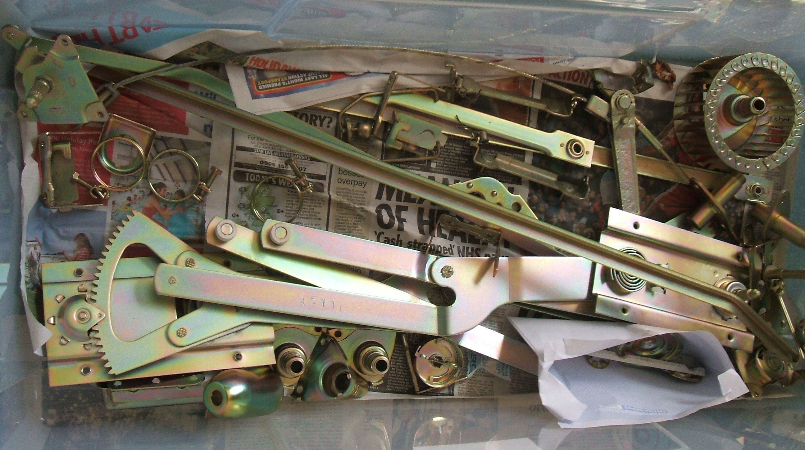 At last, some parts with their final yellow zinc plating. The aqua blasting I had done, makes for a very good finish.