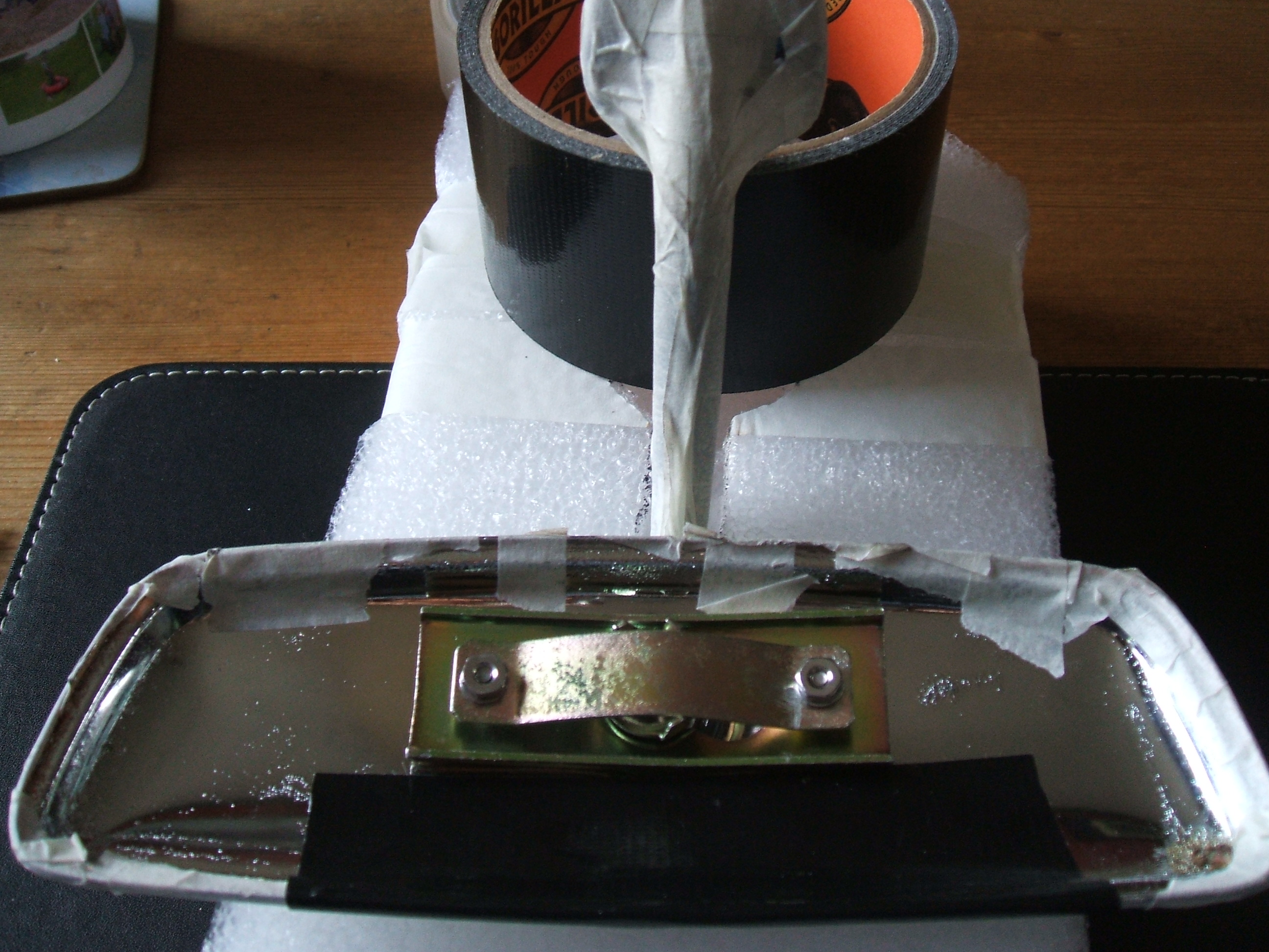 すべての部品(ガラスを除く)を組み立てる準備ができました。 マスキングテープが新しいクロムを覆います。