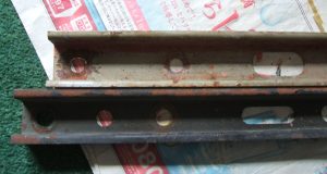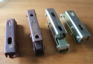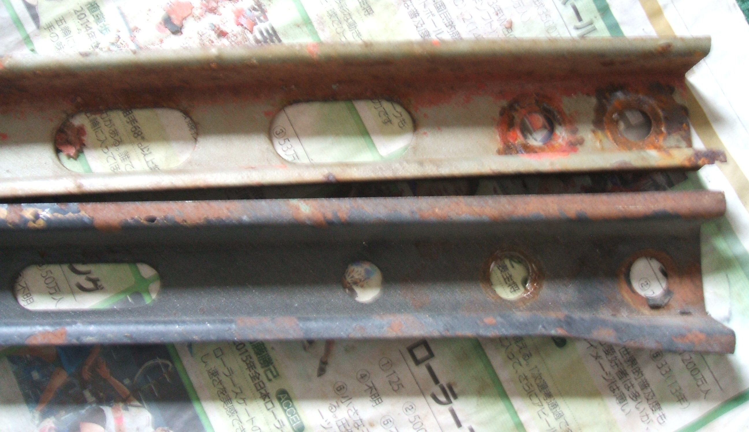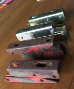Newly made Silvia bonnet hinges. As you see, mine are rusty. The pivot pins are worn.