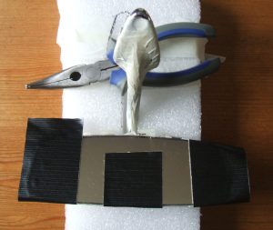 Re-mirrored glass glued in, held by tape. 再ミラー化されたガラスは、テープで固定されています。