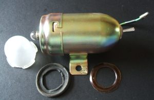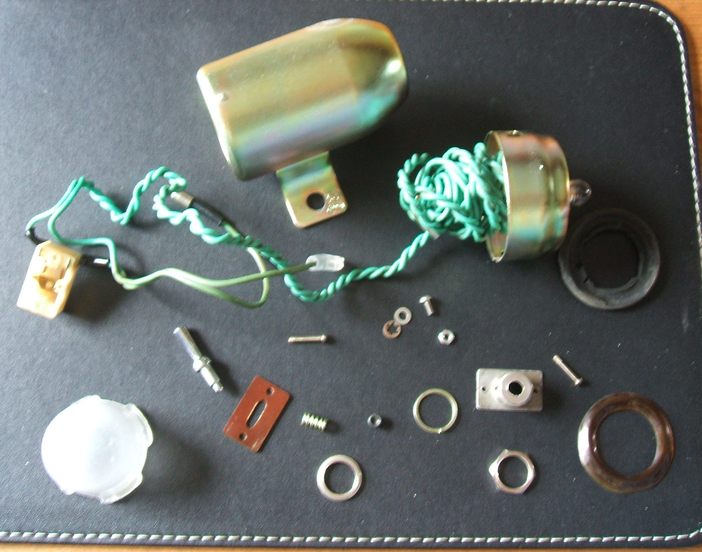 You may have seen the engine bay inspection light taken apart on a previous blog page. Here it is being assembled. Just waiting on new gasket. Again, some of the parts.