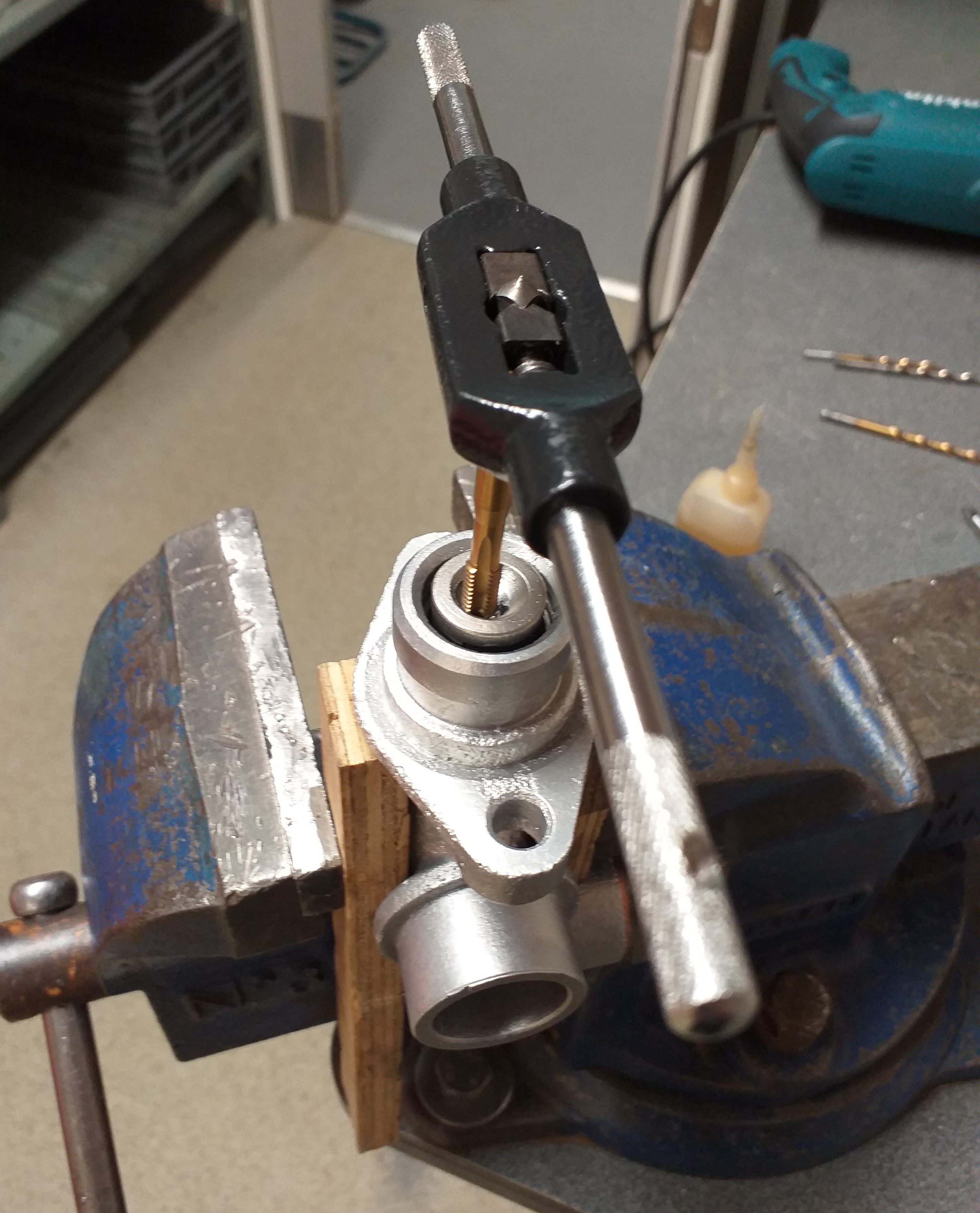 First job was make threaded holes to attach small plate on underside. Thankfully Niles left small dimples where to drill .