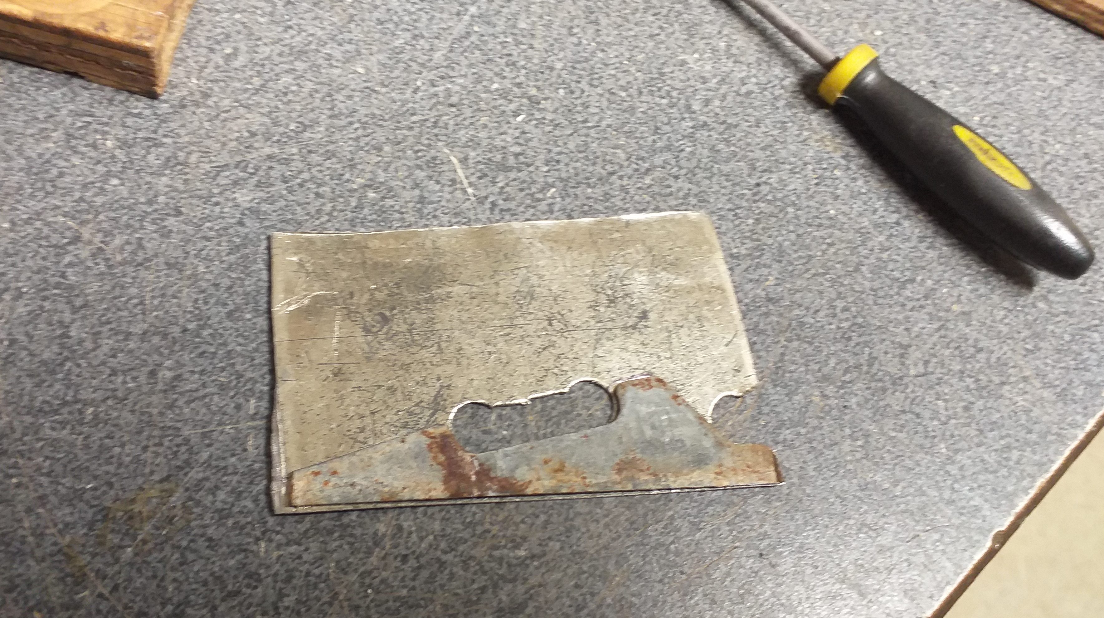 Then cut along straight lines. File to correct size.