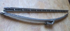 More taking apart for restoration. The grab handles, on roof, above the doors. The end covers have been chrome plated. They are rusty. Quite a job getting the metal inner out of the plastic grip.