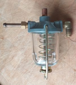 Correct metal and glass fuel filter. This mounts on the radiator cross member. This has been restored by me. Casing blasted with glass media, steel parts new yellow zinc plating. No filter but comes with correct Nissan sealing gasket. £115 excluding shipping