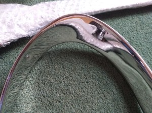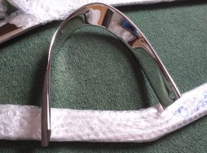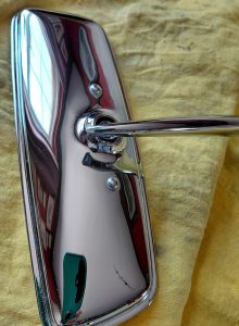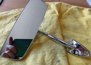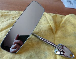 Restored interior rear view CSP311 mirror. New chrome, new computer cut glass (supplied by SP/SR311 specialist), new rivets to hold mirror together and new yellow zinc on internal steel parts. Excellent condition, no imperfections from chroming process, which can lead to the impurities in the metal (especially in the zamak made stalk). See blog page 8 for details when I did the first restoration. Chrome plating is expensive, and very few companies will deal with the zamak made parts. New glass is £100 shipped to me on its own. So, asking price reflects work done and initial purchase cost. £440 excluding shipping.