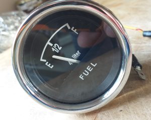 A refurbished fuel gauge correct for the CSP311 or SP311 (early models). This has been professionally restored by a vintage aircraft gauge restorer, who does the SP/SR gauges in their spare time. These gauges are difficult to take apart as Nissan somehow crimped the chrome bezel around the gauge body. Removing requires the bezel is lifted up, but this method never gives a satisfactory finish. Here, this gauge has been in a jig so the bezel is cut off, and the part behind the gauge body is removed. A special sealer is used to glue the re-chromed bezel back on.