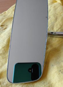 This interior mirror (below) has been restored to the same high standards as the mirror above, but there are a few minor imperfections of impurities within the zamak during the chroming process (little bubbles/pimples) on the stalk near the 3 fixing holes (to attach to the roof). I stress these are minor and hardly noticeable (can you see them in the photo below), but if you are nervous about near perfection, this will not be for you. As such, the price is slightly reduced, £410 excluding shipping.As such, the price is slightly reduced, £410 excluding shipping.