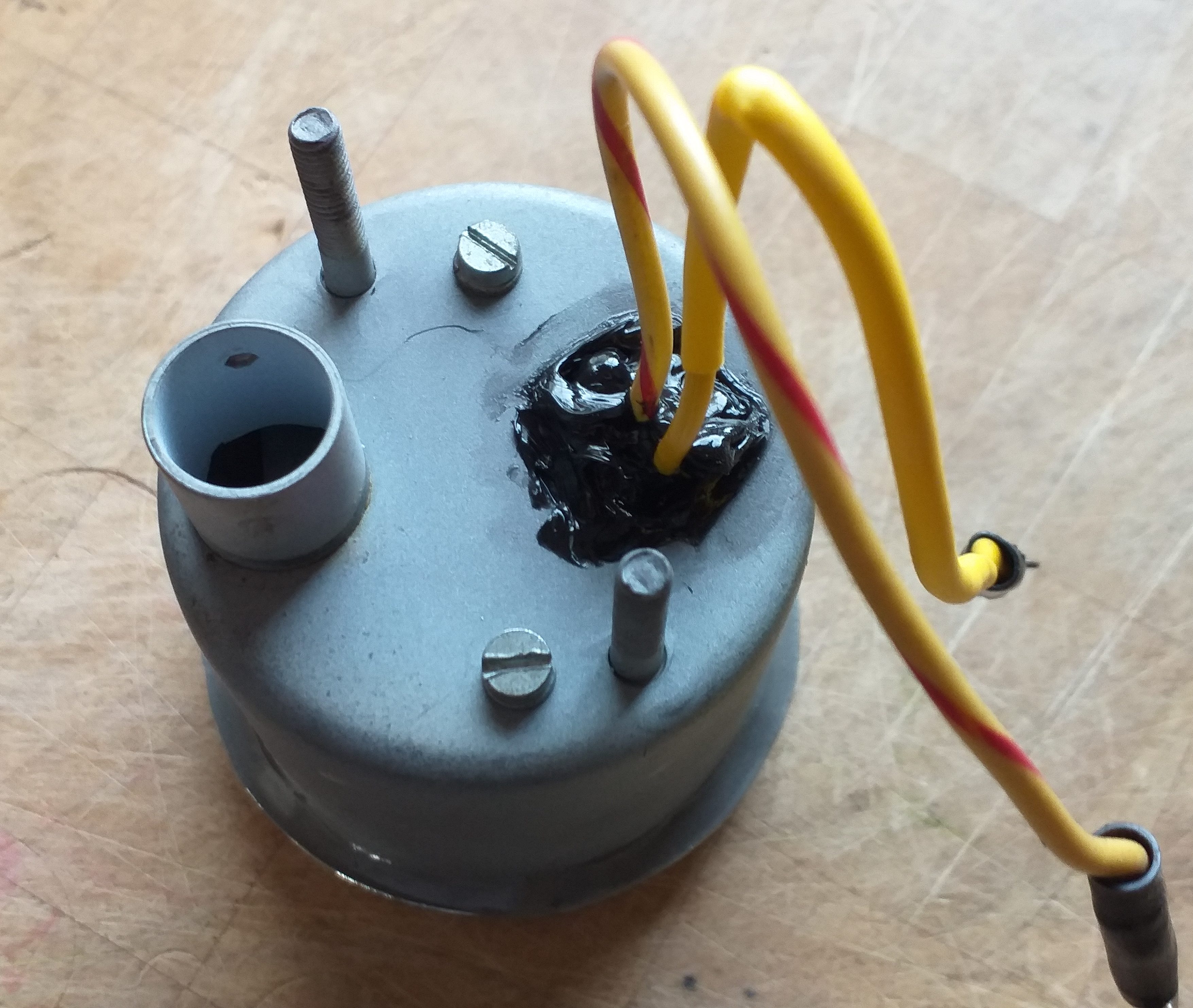 復元されたエンジン ベイ検査ライト。CSP311 用です。これは、アースと電源の 2 本のワイヤで示されます (後期モデルでは、接続ボルトを介して電源とアースのみになっています)。また、ステンレス スチールのトグル スイッチとガラスのライト ボウル (後期モデルは両方ともプラスチック)。ライトを分解し、スチールを蒸気ブラストして表面を黄色の亜鉛にしました。残りは洗浄して再組み立てしました。送料を除く価格は 120 ポンドです。