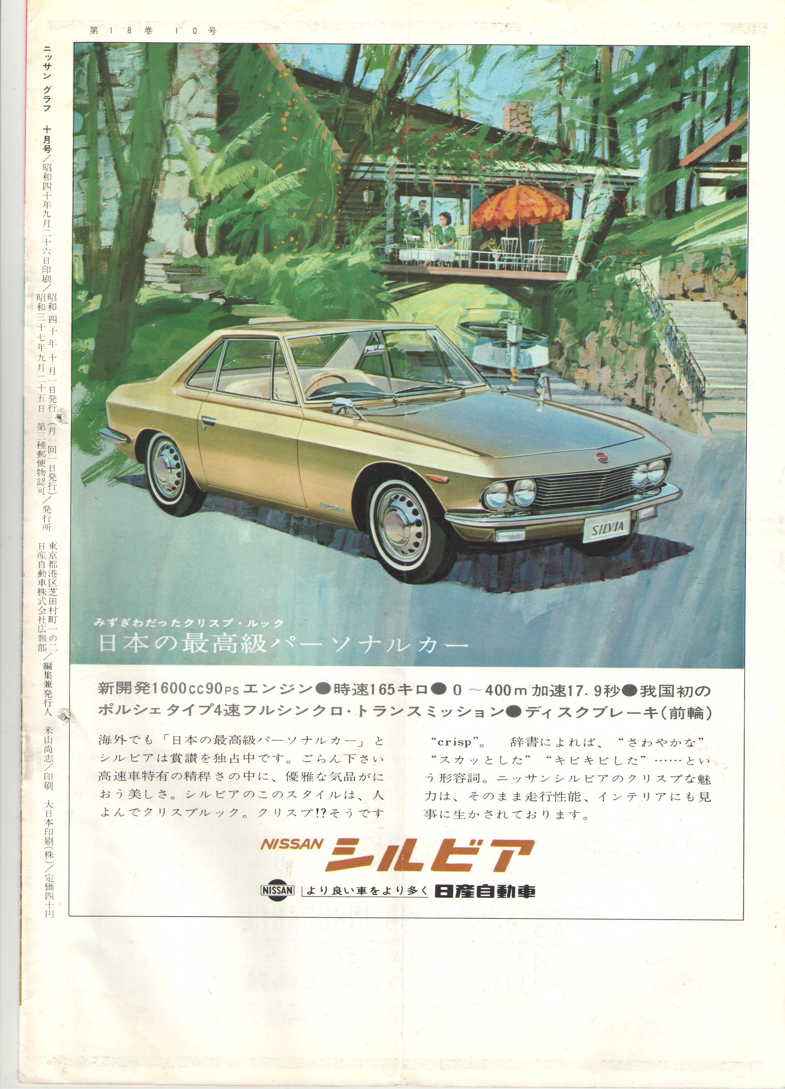 1965年9月. 私は、日産がシルヴィアを販売して、昇るための大きなプッシュには非常に多くたくさんと思います。ここでは、この号では、シルビアが目立つ、前年の東京モーターショーの写真を掲載しています。これは、以下、二ツサングラフィックの次の3つの課題を上運びます。