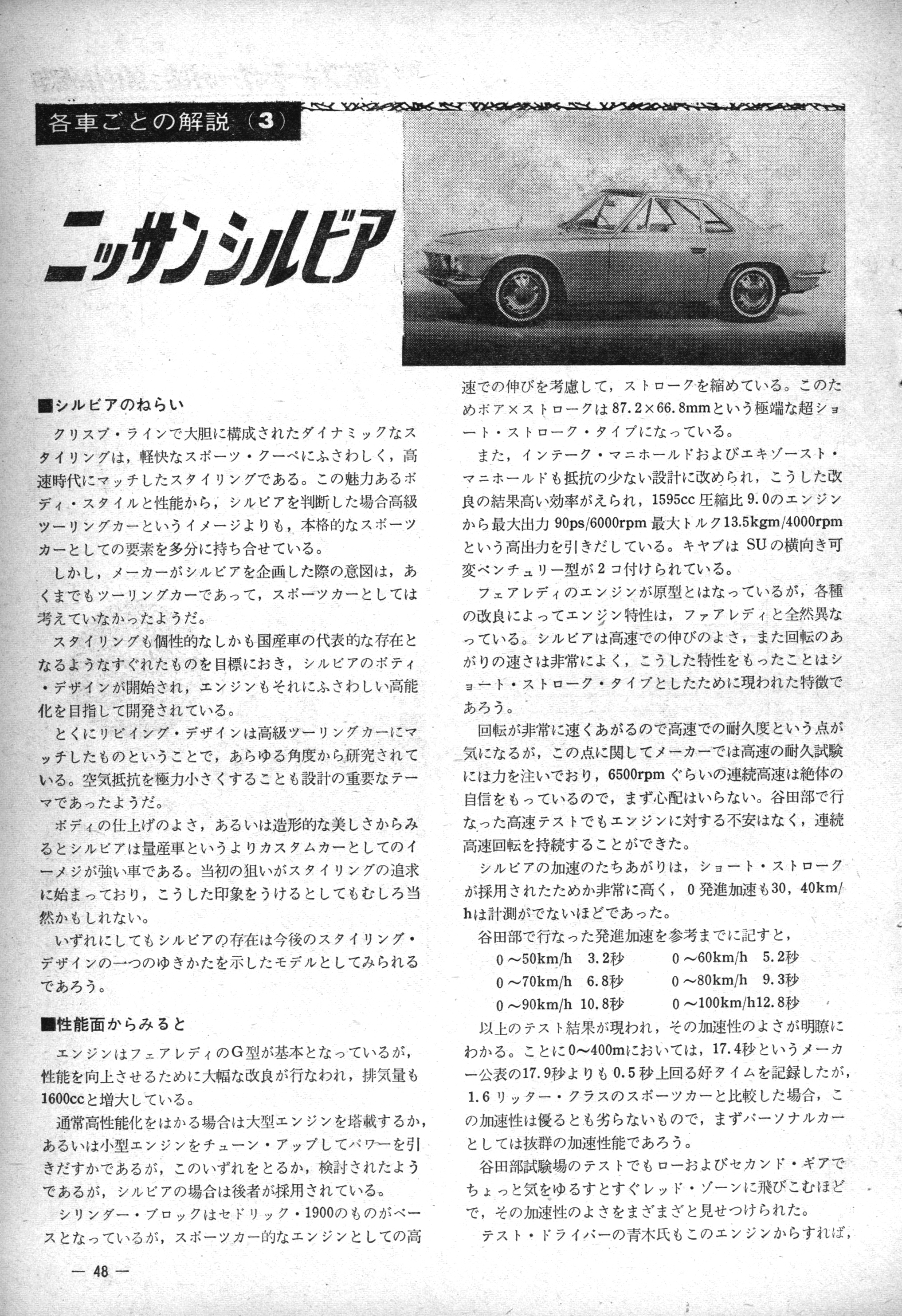 I brought this a pages cut out of a magazine from a Japanese book store, and do not know which magazine it came from. It is around the launch of the Silvia, as they are talking about the R16 engine, rather than the G series, which was in the pre-launch cars.